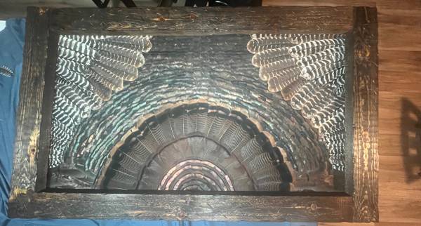 This one-of-a-kind piece is crafted from real turkey feathers, carefully arranged to highlight their natural beauty and unique pattern. Each feather is hand-selected, cleaned, and positioned to create a stunning, nature-inspired display that celebrates the wild spirit of the outdoors.