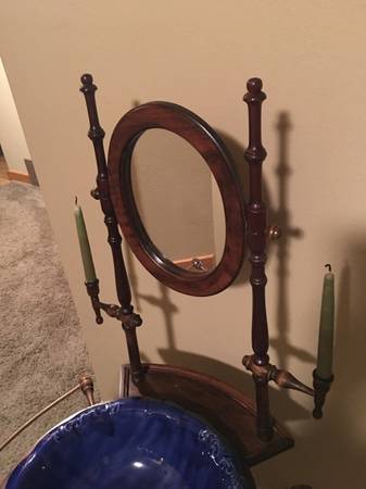 Wash stand with mirror, candle holder , basin and pitcher