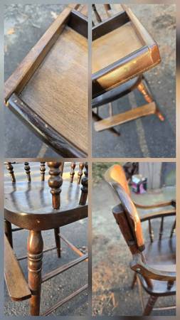 Price is firm. Antique wood high chair. There are some small dings to the finish as shown in the close ups.
