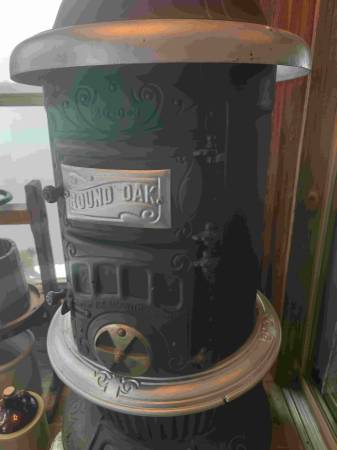Round Oak wood/coal stove manufactured in 1917, model 20-0-3 with 20" diameter firebox. Purchased by current owner, restored and used as an antique showcase item (not for burning/heating use) for the past 45 years. Excellent condition. Owner has downsized home and no longer has adequate space for display. Easily disassembles into manageable pieces for transport.