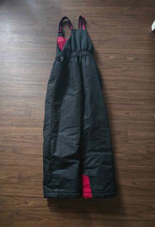 Black and red Swiss Tech boys snow pants size M (8). The right knee has a tiny hole to the top layer of fabric.