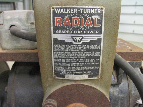 Walker Turner Radial Arm saw, 1950 Model RA1100 SN#23 243