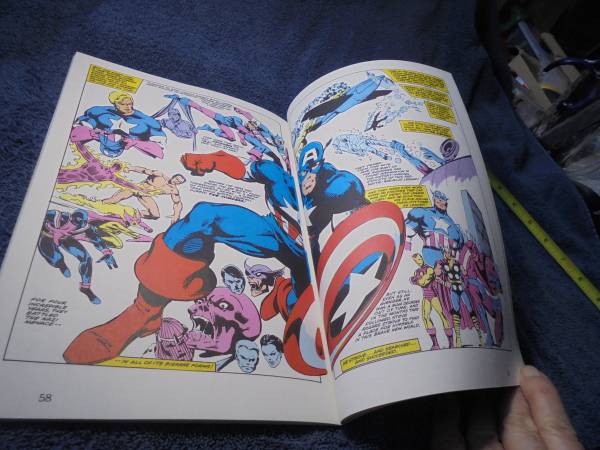 When's the last time you saw this Softcover?! There were four of these Marvel Comics releated books released in early 1981 by longtime Marvel Writer David Anthony Kraft and Roger Stern: FANTASTIC FOUR: COSMIC QUARTET, THE INCREDIBLE HULK: GAMMA-POWERED GOLIATH, SPIDER-MAN: WORLD-FAMOUS WALL-CRAWLER and This One: CAPTAIN AMERICA: STAR-SPANGLED SUPER-HERO! Each is 68 pages!