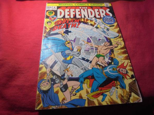 6 – June 1973 – VG! “The Dreams of Death!” by Steve Englehart & Sal Buscema shows Sinister Magician Cyrus Black trying to destroy Doctor Strange! He surrounds his house with a "force field" that only the Silver Surfer can penetrate. Inside the force field, Cyrus Black's henchmen are attacking Dr. Strange's Sanctum Sanctorum, creating havoc! With help of the Valkyrie and Prince Namor (Sub-Mariner), the Surfer and Strange defeat Cyrus Black but he manages to escape!