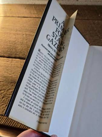 A Primer for Stargazers by Henry M. Neely how to find any visible star at any hour of the night illustrated hardcover book. There is some wear to the edges and corners of the dust jacket along with some surface scratches and a crease inside. Some of the earlier pages have some yellow discoloration as well as when the page edges are combined/closed, and a red mark to the page edges on top.