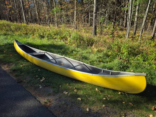 Sleek stable 17 foot fiberglass canoe, 2 seats great for canoe camping- lots of room. a steal at $100. Call