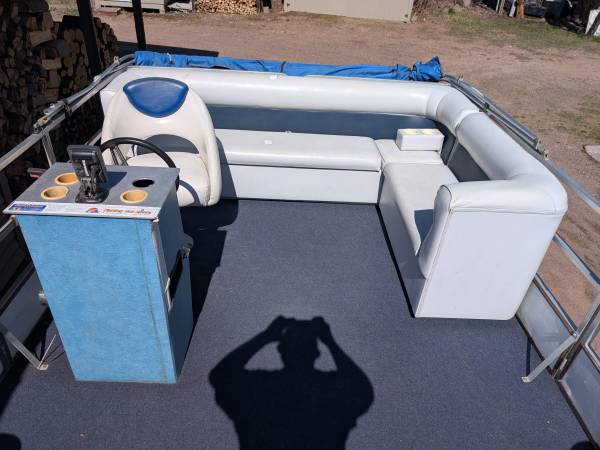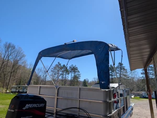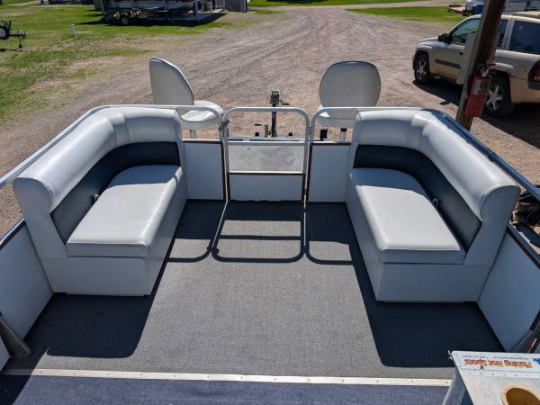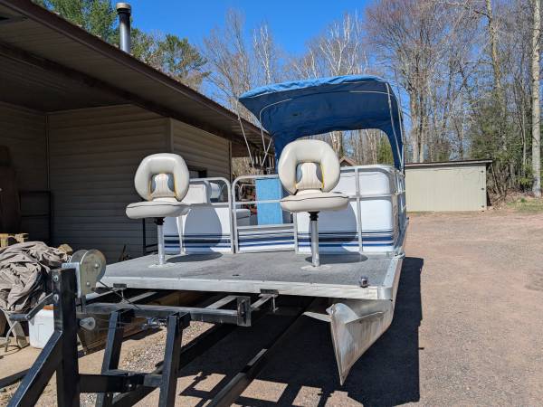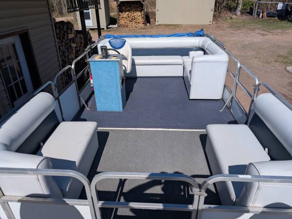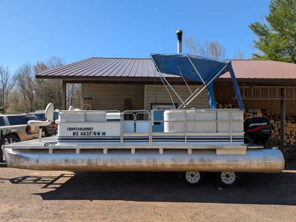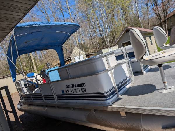 Selling a 1989 20ft Northwood pontoon boat with a 2001 50hp big foot outboard. Front half of floor has been replaced so no soft spots. Stored indoors. Sold by retired outboard mechanic. New spark plugs, lower unit oil, and throttle/steering cables, and brand new carburetors (receipt available). NO TRAILER INCLUDED. Will deliver within 1 hour if necessary. Call/text nine two zero 883 five five one zero with questions. $5,750 OBO.