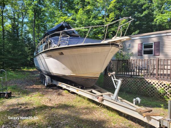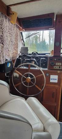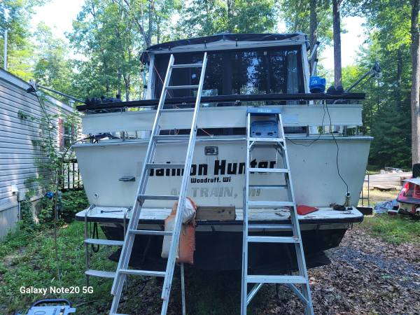All welded aluminum. Twin chrysler 318's. Velvet drive transmissions. Auto pilot. Radar, chart plotter, New holding tank. New microwave. Tri axle aluminum trailer. Two electric downriggers. Could trade for a truck or trike or tractor with loader or a hd forklift. show contact info