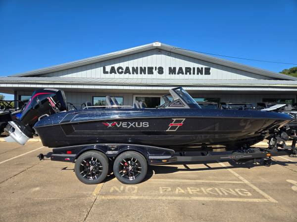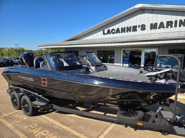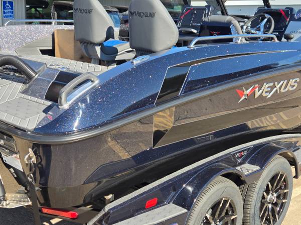Just arrived! 2026 Vexus DVX 20-S powered by a 300hp Mercury Pro XS 4 stroke motor! The colors are: Nightshade Blue main color, Carbon Black Gel hull stripe, Steel Slate pinstripe, and Steel Slate interior.
