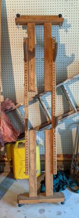 Wooden bike rack - very sturdy - against a wall holds 2 bikes - free standing will hold 4 bikes. Keeps your bicycles off the floor. Moved, have no space for it. Cash Only - Pick up Only 4 miles...