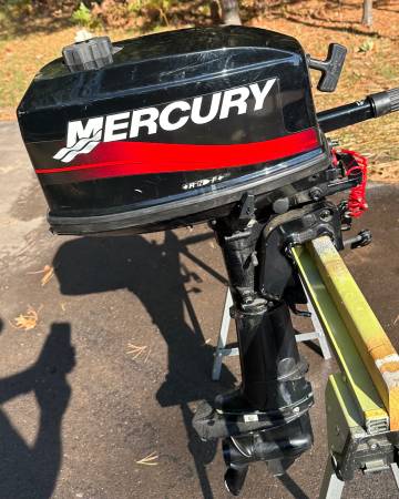 This is a Mercury 5 HP outboard motor. Very low hours and in nice condition. Two cycle single cylinder, lightweight and easy to handle, only 44 lbs. Recently tuned up. Works with internal gas tank or external gas tank (not included). Runs great. Includes manual and tool set.