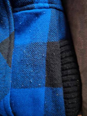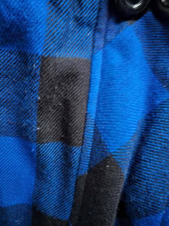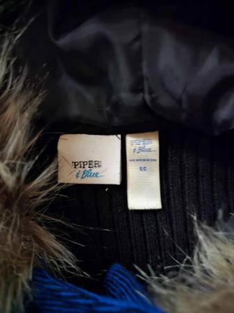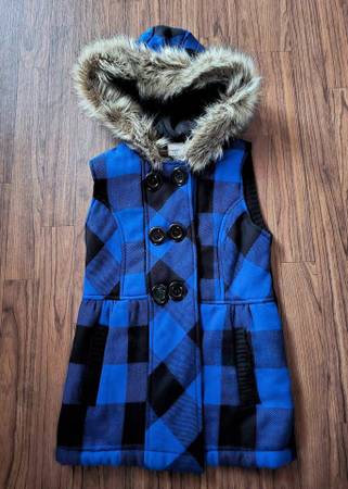 Blue and black plaid buffalo check faux fur trimmed hooded Piper & Blue button vest with stretchy back size small. There are some minor pilling balls here and there, but most can be pulled off...