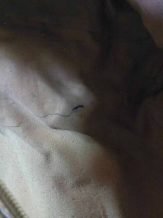 T-shirt & Jeans brown purse with removable crossbody strap. The two mini straps over the end of the main strap on the right side are missing. Has no effect on anything other than cosmetically though. The inside has some pilling and a pen marks and some scuff marks to the bottom exterior. It measures 8" high and 9" wide.