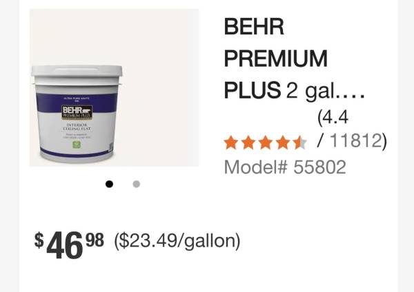 BEHR PREMIUM PLUS is backed with a Lifetime Limited Warranty. I am asking $ 35.00 for a total of 4 gallons obo. Originally over $100.00. One container is about a year old the other container about one month old. There is nothing wrong with these paints. I decided to go with an off white eggshell paint for my ceilings. If you have any questions, please ask. I thank you for looking at this ad, much appreciated. I could meet locally at Home Depot's parking lot adjacent to Lincoln St in Rhinelander.