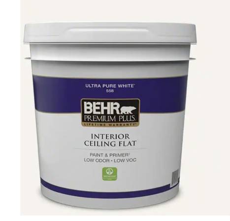 The BEHR PREMIUM PLUS Ceiling Paint features a durable, acrylic-latex formula that is specifically designed for use on previously painted or primed interior ceilings. This spatter resistant formula minimizes glare and provides a mildew-resistant finish. This formula also maintains the original acoustical ceiling properties.