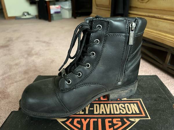 Harley Davidson Ladies Boots (new) black leather steel toe with zipper entry womens size 8-1/2 M