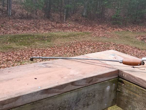 Vintage Great Lakes downrigger with reel manual crank. Total length 35-1/2" long, reel is 5-1/2" in diameter. $125 o.b.o.