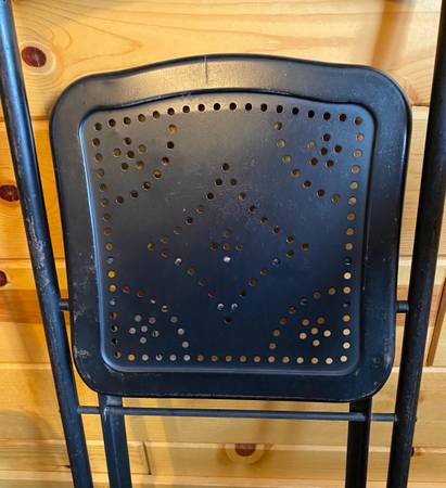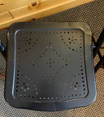 4 Antique Vintage Metal Folding Chairs Came from a church/school dining hall. 2 black and 2 brown. Sturdy, in good condition. Asking $20. Thank you!
