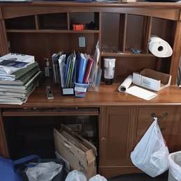 23x60 x 56 tall Beautiful desk sized to fit smaller areas. very functional:two drawers, file door, keyboard drawer and many sorting slots.