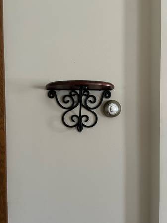Corner shelf Unit w/ Wall Shelf Black iron frame with wood shelves 18" x 18" at largest bottom shelf