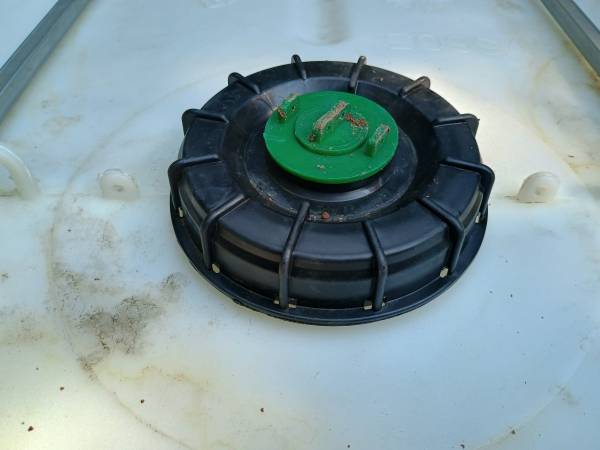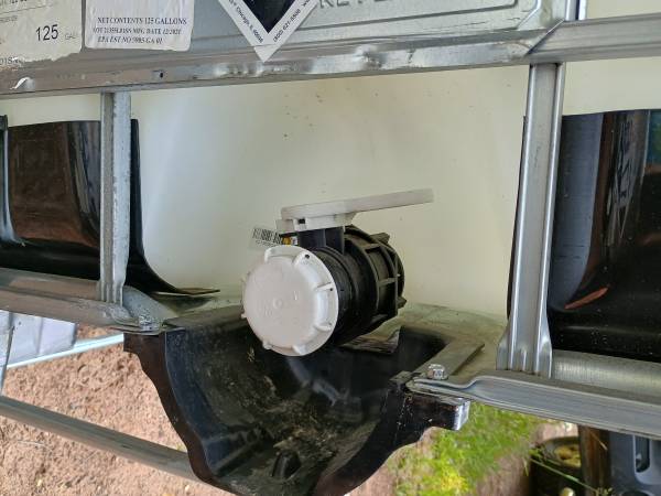 Equipped with 6" bung on top for filling and a valve on bottom for dispensing