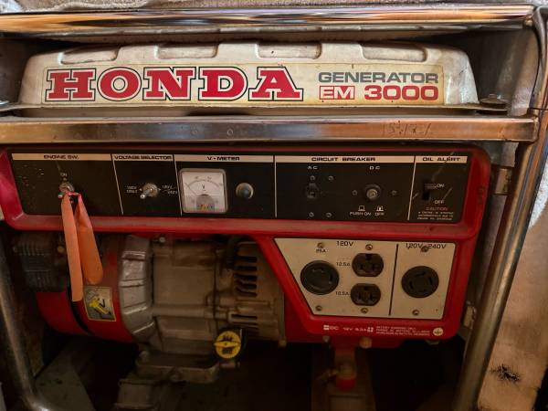Up for sale is a Honda EM3000 Generator I bought new in 1994. It fell off my pickup truck when I first got it so the cage is bent slightly, but it has always run great and is very reliable. I built a roller platform for it so it can be easily moved with little effort. It has only been used in emergency situations, never for extended periods of time. I now have a new Generac Generator and no longer need this one. It’s better to let someone else get some use out of it rather than just keep it in the corner of my shop collecting dust. Asking $325 OBO. My zip code is 54515, so please do your graphical homework since this too heavy to ship. Thank you for looking.