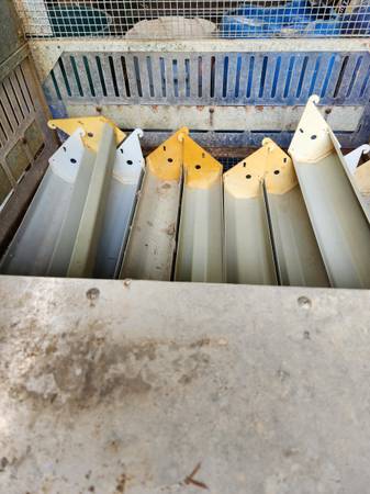 Stackable GQF brooders, 2 with extended height sides, it does have some wear and tear from years of use but all works as it should. All kinds of extras come with them, extra heater unit, wafers, new in box troughs, light bulbs, used troughs, covers and poop trays. There's also 3-1 gallon waterers that I use inside the brooders on occasion.