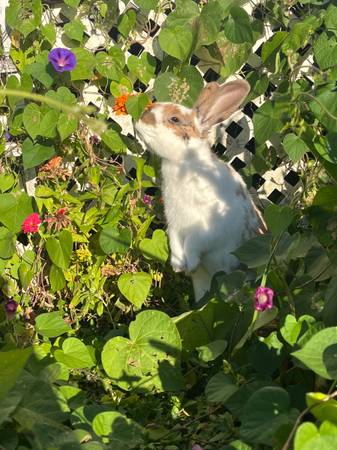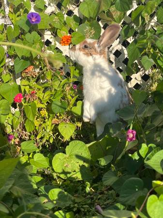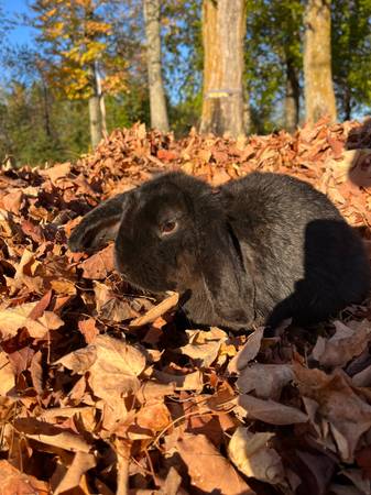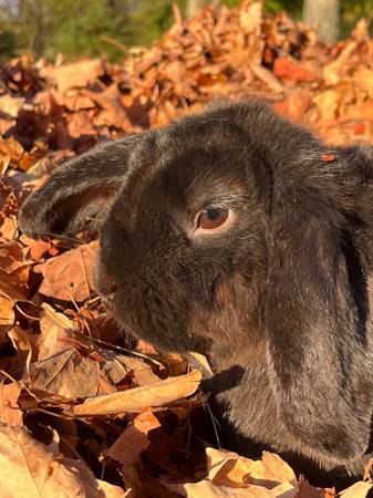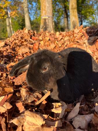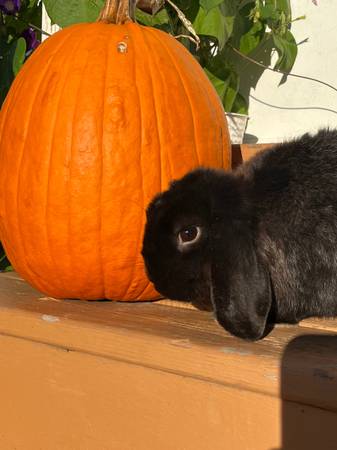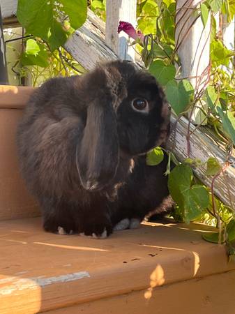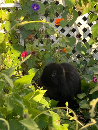 These to young rabbits are looking for a new home. The tan one is mini lop and quarter mini rex female she is six months old she very very good with kids and dogs .$50 The black one is mini lop and is a male he is a year old.And is good with kids and dog asking $45.