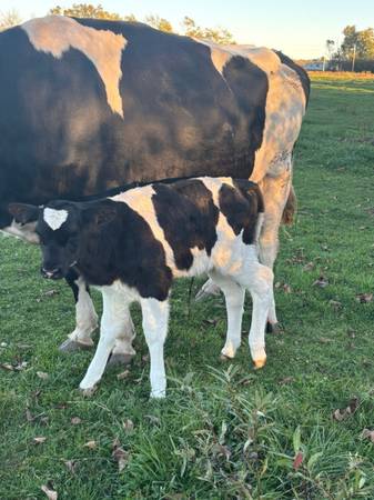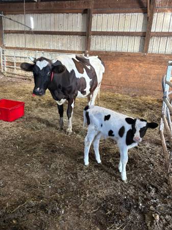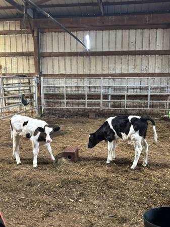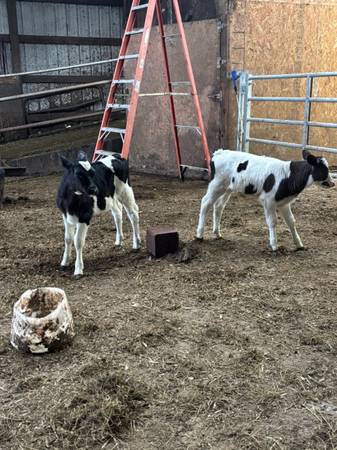 Location is Ogema, WI. 54459 3 Very Nice Calves! No twins Colustrum given Huge Holstein Bull DOB 10/15/25 $850 Stocky Holstein Bull DOB 9/29/25. $800 Large Holstein Heifer DOB 10/7/25. $800 Or all 3...