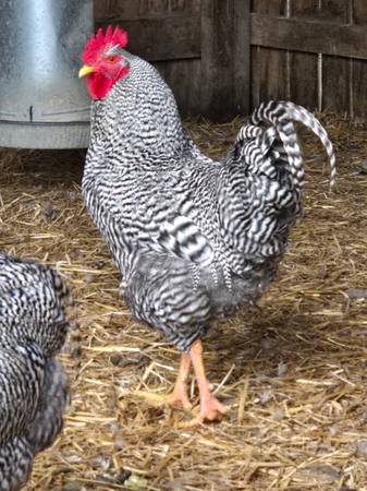2 Barred Rock roosters for sale. About 5 months old right now big gorgeous roosters. The have been free range all summer and get 100% organic feed. Text or call Thanks