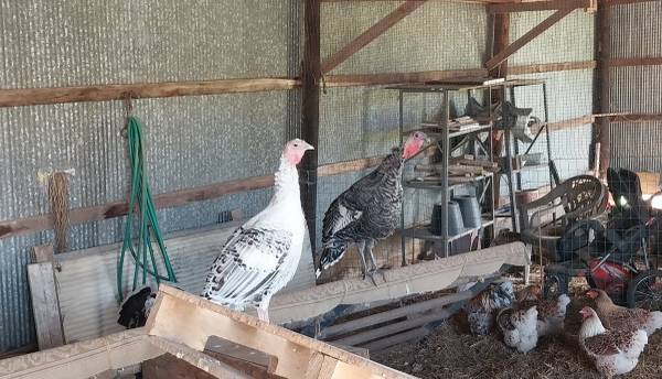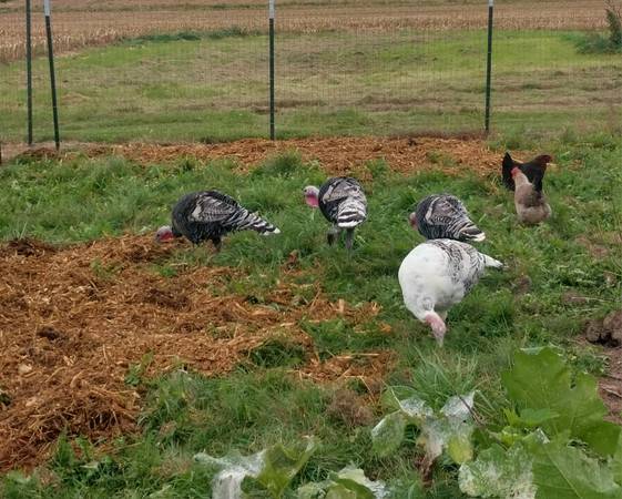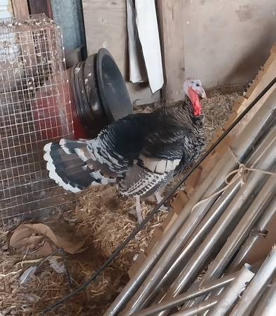 4 turkeys, 1 male and 3 female. $50 per bird. They do not need to go together. Unsure of the exact age, guessing between 8-10 months old. Heritage breed mixes.
