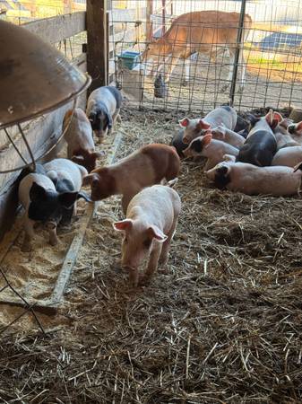 Crossbred feeder pigs 8 weeks old on October 18th. 20 available.