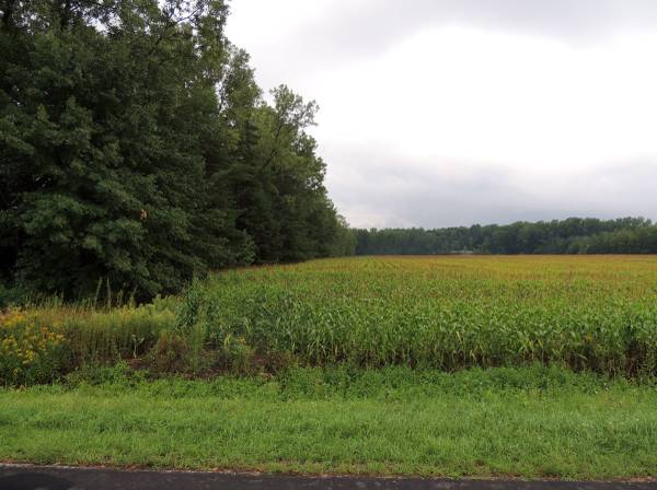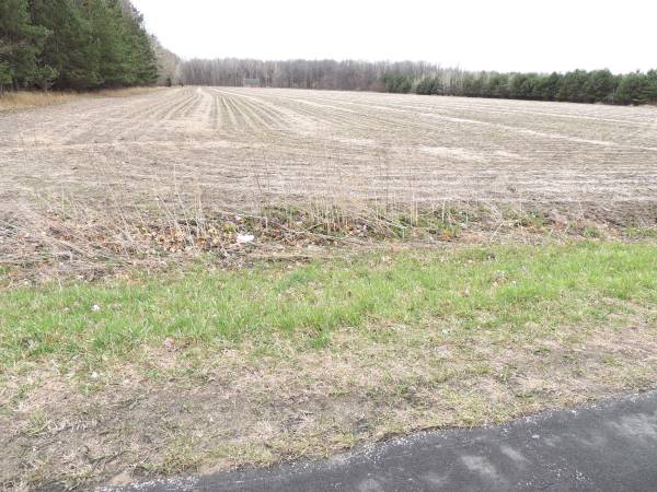 Photos show the property from the north road looking south, starting at the east end, moving west for 1/4 mile passing the center driveway and tree line that divides the 40-acre parcel into two ~20-acre sections.