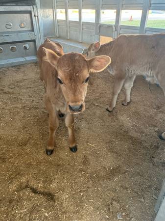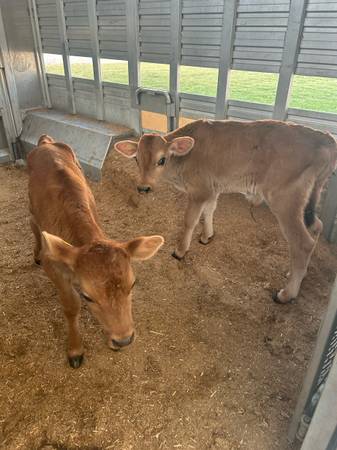 Couple day old jerseys right off the dairy! All fed 3 feedings of colostrum navel dipped and enforced. Any questions call text leave a message 715 nine two three 83 five zero Also the calves are in...