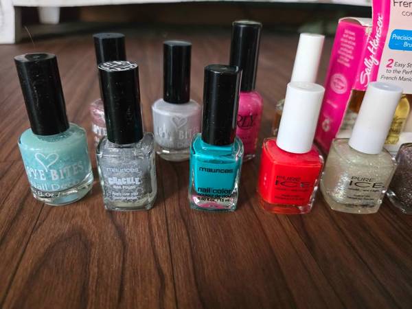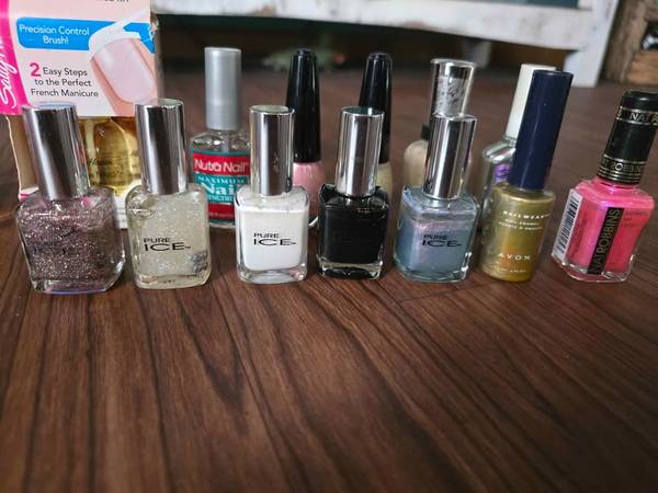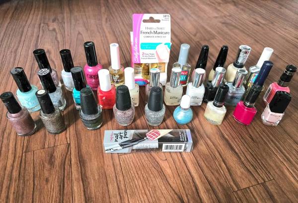 33-piece lot of various nail polish. A few are new such as the French manicure kit and nail art pen, some were used very little, and some had a lot more use than others. Some brands include Maurices, Pure Ice, Sally Hansen, Love Bites, L.A. Colors, and more.