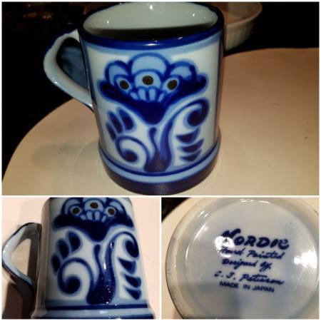 Very nice Blue flower mug from Nordic in the delft style. New Condition. Cash only, you pick up. Public meet near Hwy 63/M, or other agreed upon public spot. Multiple places to meet for pickup....