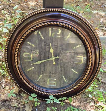 21" Westminster Clock Company clock. Works fine. There is a crack to the plastic on the back near the edge, but it has no effect on anything.