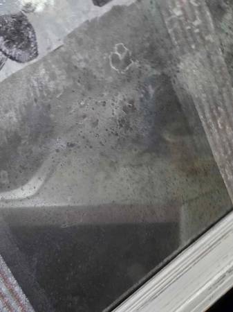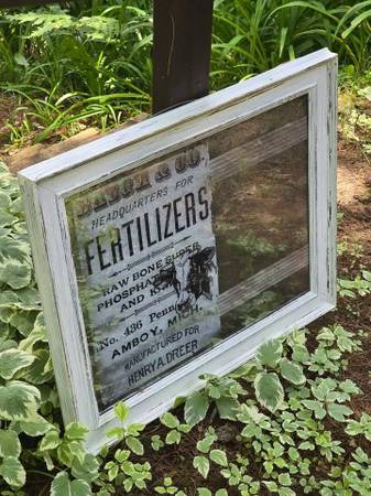 Price is firm. Unique distressed white wooden frame with a heavily weathered mercury style looking mirror and ad on the left side wall hanging. It measures 20.25" high and 24" wide.