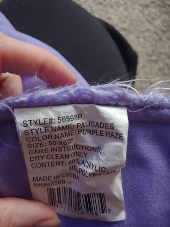 "Palisades Purple Haze" faux fur/long hairy 50x60" throw that was used for display.