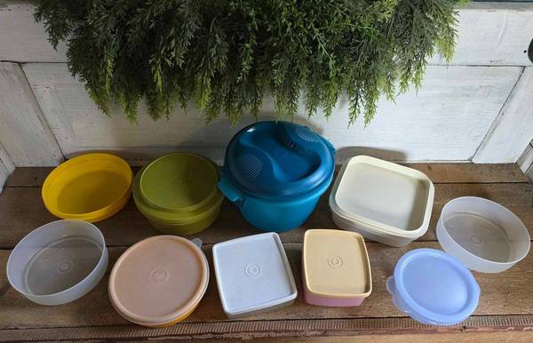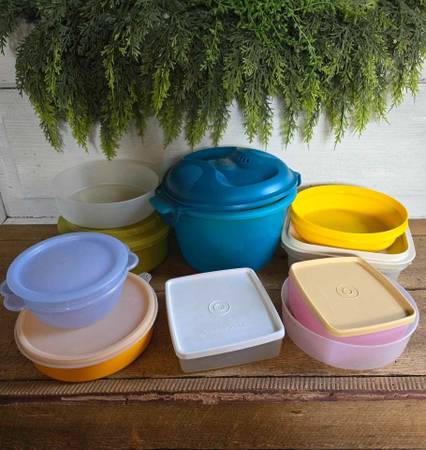 Will not separate. Vintage Tupperware lot. The green one has discoloration inside and two clear ones have a bit of cosmetic wear at the bottoms.