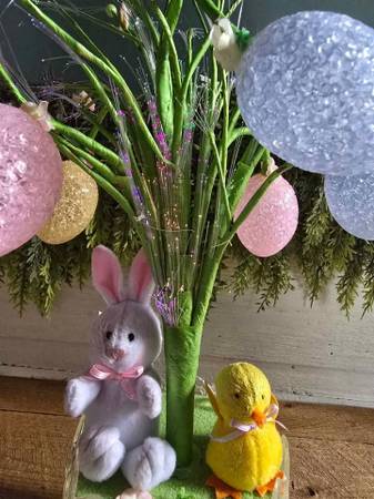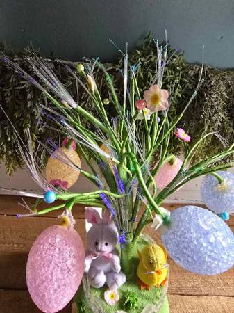 Price is firm. Avon Blossoming fiber optic musical light up Easter tree decoration. Works fine. There are some small spots on the green tree trunk as shown in the close ups.