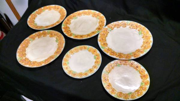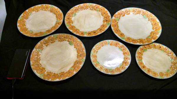 its a 6 piece flower design plate set with 2 small app plates and 4 large dinner plates. make offer