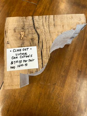 Pair of Vintage Oak Corbels Reclaimed Oak Approx. 8” x 10” x 12” each Regular $1,400.00 Lot 14 Special $700.00