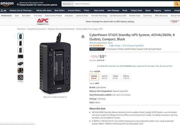 This CyberPower 425va has a back-up battery that has run down, but it can be replaced with a brand-new battery for way under $10. (See Picture) ALSO… the “SURGE PROTECTION” side of it (four grounded outlets) 100% works perfectly. So, you can protect your expensive TV, DVR, or DVD Player, etc. for pennies compared to what they cost you. A new unit would cost you over $50! (See Other Picture)