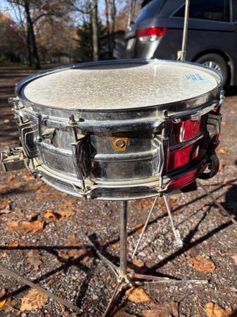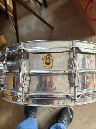 I believe the snare is a “VINTAGE 1962-63 SUPER LUDWIG 400 COB (CHROME OVER BRASS) 5x14" SNARE DRUM, pre-LM400, pre-SUPRAPHONIC.