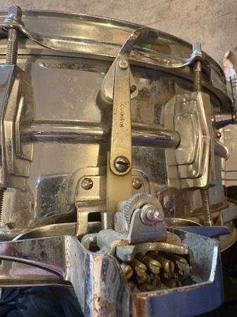 I’m selling for a friend. The description you see here was pulled from a drum on eBay. As of the publication of this, I have a friend who has been drumming for 50 years who is going to verify what we have here. I am a retired band director and used a magnet on the drum and it is non-magnetic. The snare is heavy and is not pitting like an aluminum drum would.