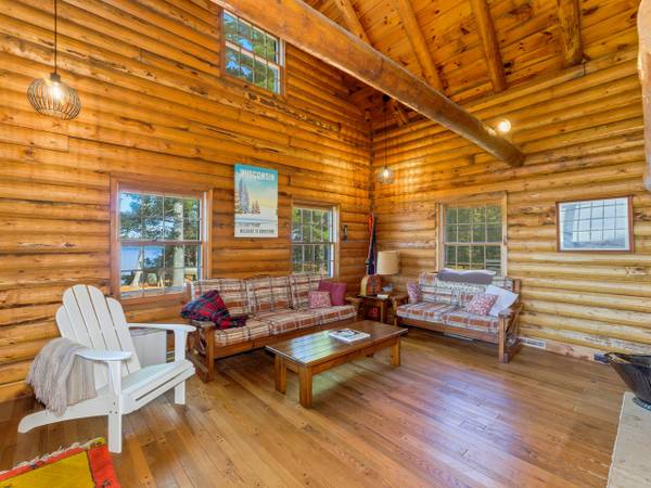 Extremely private setting featuring 4 acres and over 235 feet of west facing frontage on Lake of the Falls! The property is amazing! It’s perfectly level to the water, great sand for swimming, lots of land to stretch out, play games & have a fire by the shore. You’ll love the breathtaking sunsets while sipping your favorite beverage on the lakeside covered deck. The log home features a warm and inviting rustic design with beautiful wood ceilings & exposed beams. 2 grand stone fireplaces highlight the living room & primary bedroom, while the dine/living area offer panoramic lake views. Main level hosts Bedrm, full bat, kitchen, dining & living room with towering cathedral ceiling. Upstairs offers 2 bedrms and look out area over the great room. There is a full basement, 2 detached garages and the home comes furnished! Lake of the Falls is a great fishing & recreation lake, is located with direct access to the UTV/snowmobile trails, close to restaurants, town, yet quiet secluded setting! Offered by CENTURY 21 Pierce Realty, LLC # show contact info