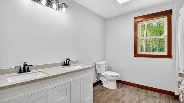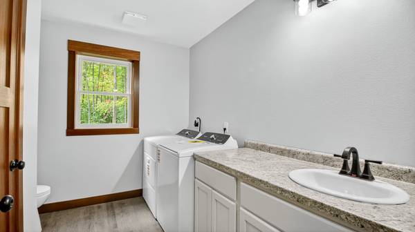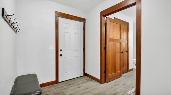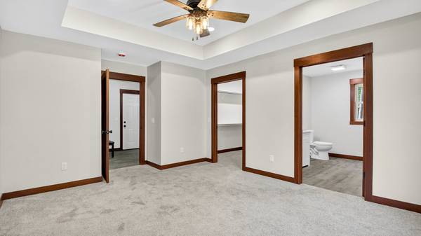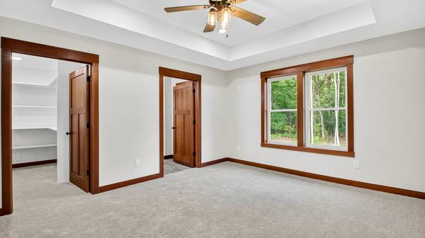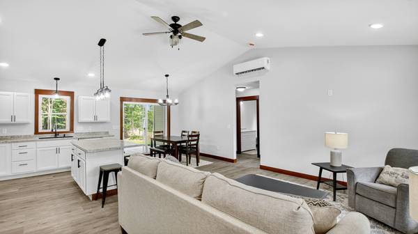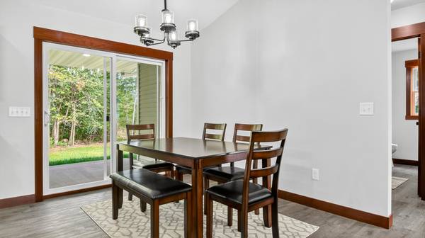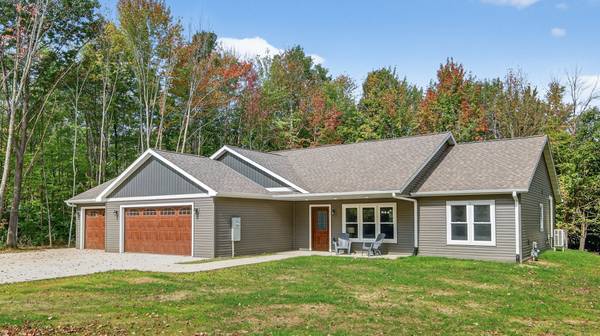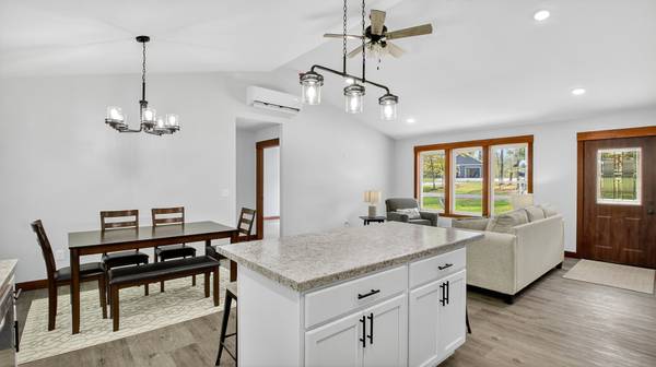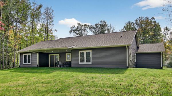Nestled just outside of Cadott, this beautifully crafted zero-entry ranch home combines comfort, style, and convenience. The open-concept layout features vaulted ceilings in the living room, dining area, and kitchen—creating a bright, airy atmosphere perfect for everyday living and entertaining. A spacious kitchen island adds to the home's hosting appeal, while all major kitchen appliances are included for your convenience. The master suite offers a touch of luxury with a tray-vault ceiling, dual sinks, walk-in shower, and generous walk-in closet. Wide 36-inch doorways throughout provide easy accessibility. Step outside and enjoy peaceful views from the covered front or back porch, surrounded by mature trees and a private backyard. The attached 24x34 heated garage is fully finished, offering plenty of space for storage, hobbies, or projects. Located just off a major highway, this home makes commuting a breeze while still giving you a quiet, private retreat to come home to.