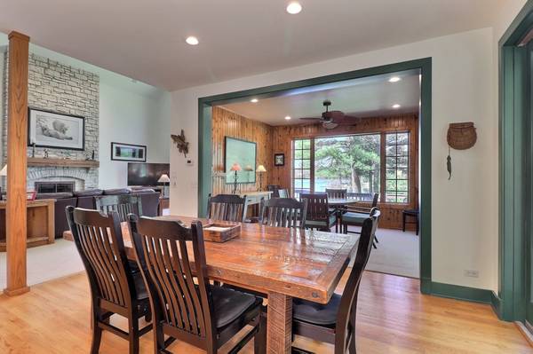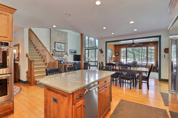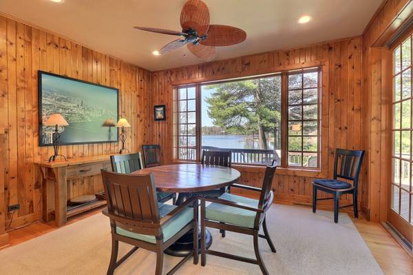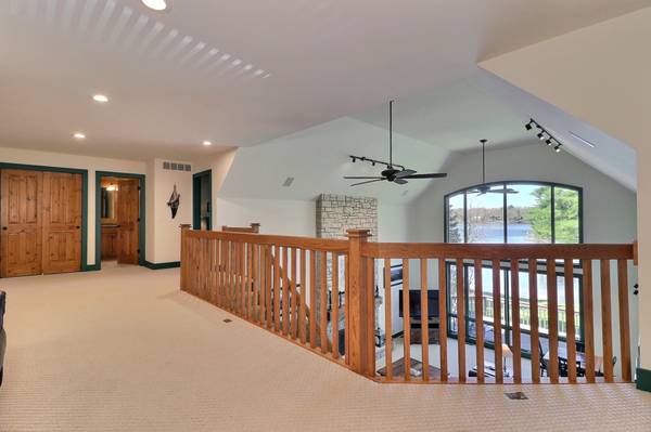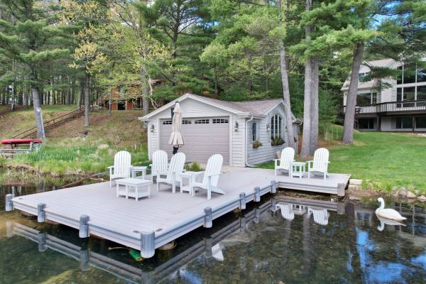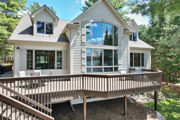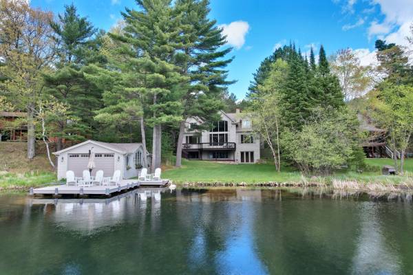 Exquisite custom-built home with 114ft of pristine level sand frontage on Lake Minocqua & the coveted Minocqua Chain—nearly 6,000 acres of water featuring top-tier dining & recreation. Nestled on a private dead-end road, this signature estate boasts a winding driveway through towering pines, offering seclusion & natural beauty. Enjoy a heated 4-car attached garage & 4-car detached garage with a heated workshop & bathroom. The finished & heated boathouse with a track system, permanent pier, & SW exposure ensures breathtaking sunsets. Inside, soaring 20ft great room ceilings, a main-level master suite, laundry, & an upper-level loft w/ 2 en-suite BRs, an office, and spacious game room create a flawless layout. Downstairs, you'll find another BR and BA, family room, and a dead-level approach across the irrigated grassy lawn to the shore. Located in a serene bay on the prestigious north shore of Lake Minocqua, this is a rare opportunity to get a premier lakefront retreat.