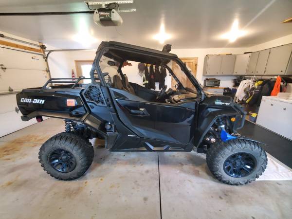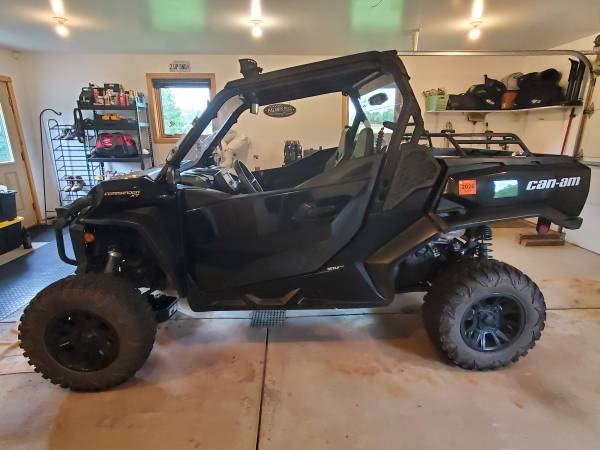2022 Can Am Commander XT 1000R SxS. 2 light bars in front, luggage rack linq system on bed, spare tire with matching rim, front full poly hard coated windshield with side air deflectors, aftermarket back window and winch. 0 miles on fresh oil change, transmission oil and front differential oil change. Back tires at about 40% tread left. Front tires 80% tread left. Spare tire is 100% with rim matching the front rims on the machine. 11,623 miles. I have owned the machine for 2 years and bought it with 425 miles on it. Around 1000 miles on new OEM belt. Spark plugs were replaced around 1500 miles ago. I have done all scheduled maintenance per the owners manual. Everything works and it runs great.